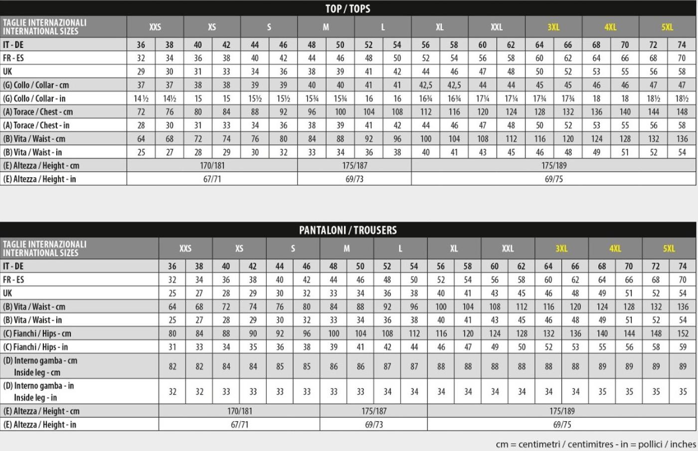 BASE PROTECTION- Tabella taglie
